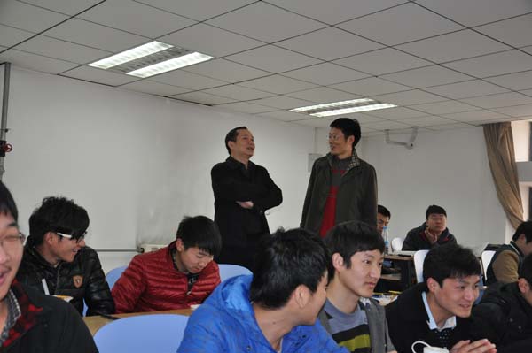 党委书记章毛平、院长周福宝、副院长李增华、党委副书记钱雄以及一线辅导员老师走进课堂听课,并检查了同学们上课的情况。