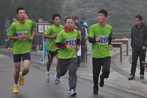 南湖校区鸣枪开赛。安全学院教授王德明,教师张仁贵、蒋静宇、刘应科、仲晓星、戚绪尧、13级辅导员杨洋以及部分本科12级和13级的同学参加了这场激烈的角逐。全程沿学校环路内侧车道逆时针绕行七圈,共21.0975公里的赛程是对所有运动员体力与毅力的一次巨大挑战。