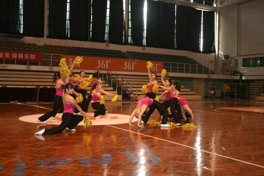 上午10:00,选手们在女生部副部唐玉华的带领下乘车至文昌校区。在体育馆内,选手们紧张地进行着赛前的准备工作,有的选手通过看手机里的录像来熟悉动作,有的则在原地练习动作。上午11点,比赛正式开始。首先是由主持人介绍参加本次活动的嘉宾和担任本次比赛的评委以及各个学院的参赛队伍。在管理、徐海学院等5个学院相继表演结束后,绅士会所