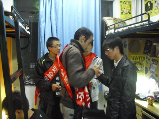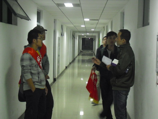 D组成员到达宿舍后立即针对每个宿舍的晚自习出勤情况进行登记。检查过程中绝大部分同学都在公教区或图书馆学习,只有极少数同学留在宿舍学习,整体宿舍晚自习出勤情况良好。9点30分D组成员撤离。9点40分F组成员在组长罗叶波的带领下进行卫生检查,主要检查了各宿舍卫生、人文环境、违章电器使用情况,并在考核部的监督下如实登记。10点许F组成员完成任务后撤离。