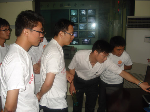 博硕生实践调研团一行仍然早早来到朱仙庄煤矿。团队一行的到来,受到了煤矿工作人员的热烈欢迎。在煤矿技术员张献柱的陪同下,实践团成员参观地下实时检测系统。陪同参观期间,张献柱同志向团队一行介绍了朱仙庄煤矿的大体情况,使团队成员对朱仙庄煤矿有了一定的了解。接着,他更详细介绍了井下实时检测系统的性能,及其在煤矿安全中所起到的重大作用。随后,绅士会所