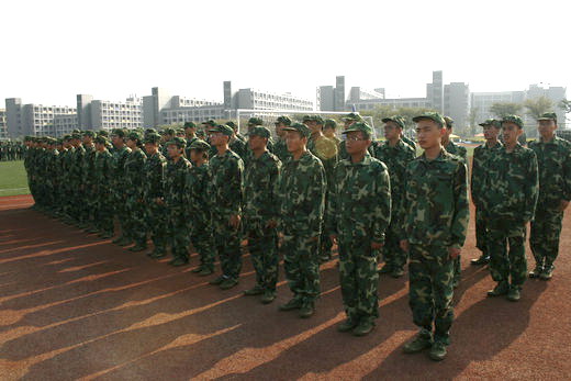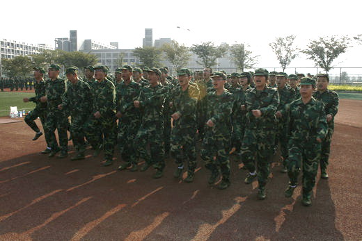 150多位10级新生开始了为期近三周的军训生活。军训场上,在教官们响亮的口令声中,各排同学认真的进行着立正、跨立、停止间转法、碎步看齐、敬礼以及脱帽等基本军事动作的表演。虽然烈日当头,但新生们严格的按照教官的指令,认真学习各个动作。对于新生动作做不到位的地方,各位教官不厌其烦的亲手指导与示范。严格的军训确实很苦,但是绝大多数新生都以饱满的姿态面对军训。在军训场上,每一位新生都严格要求自己的动作做到标准,整个队伍的动作做到整齐。