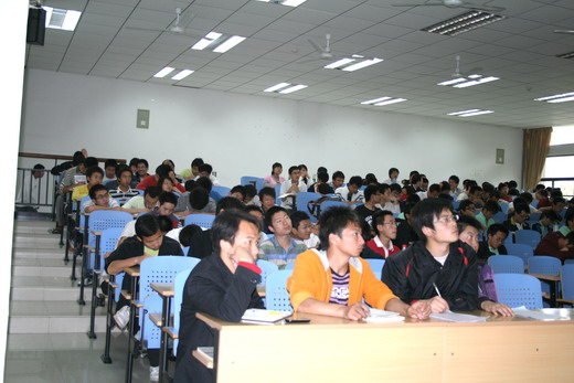 同学发出号召,极大地鼓舞了同学们的士气,讲座在热烈的掌声中结束。