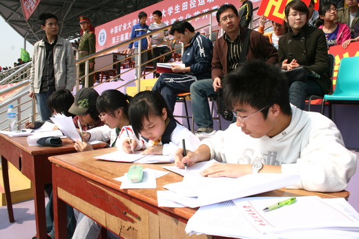 运动员在各个项目中奋勇拼搏,挑战自我:在男子三级跳远中,阿力木江与崔南南两位同学抓住每次机会,奋力向前跳跃,在运动场上留下他们拼搏的脚印;参加女子三千米的罗夏与邹媛以及参加男子五千米的禄利刚和马维界四位同学尽管体力透支,但他们都选择坚持到底跑完全程;朱晓宇同学在五项全能比赛中更是用行动诠释了“坚持就是胜利”的信念;而参加4*400米接力赛的四位男生更是在雨中迈开矫健的步伐,挥洒汗水,坚持完成比赛……