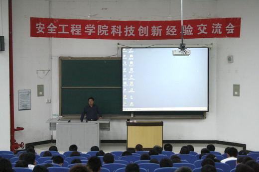 稍后,卢守青、金侃、刘朗三位同学与同学们分享了他们在科技创新实践中的宝贵经验。卢守青同学根据自己的经验为同学们介绍了专利申请中发现、酝酿、研究、撰写及申请的过程,并鼓励大家善于发现、勤于钻研。金侃同学向大家介绍了自己负责的国家大学生创新性试验计划项目,给同学们带来深刻的心得体会。而刘朗同学在谈到自己的论文从着手到被SCI收录的经历时,也向大家讲解了有关论文撰写中选材和文字图片格式的一些要求和方法。