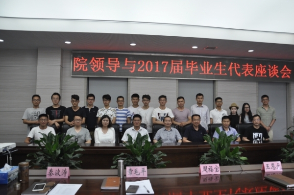 “2017届毕业生与院领导座谈会”在矿业科学中心A412举行。院党委书记章毛平、院长周福宝、党委副书记钱雄、教学副院长秦波涛、科研副院长王恩元、学工办主任于基伯、2013级辅导员孙婷等与17名毕业生代表欢聚一堂,座谈交流、释疑解惑、鼓劲加油。