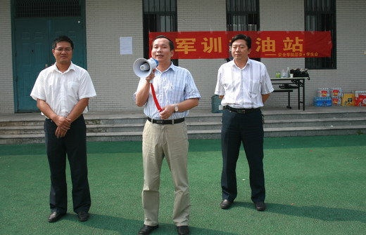 领导为正在指导军训工作的各位教官及正在参加军训的10级新同学送去了亲切的祝福与问候。