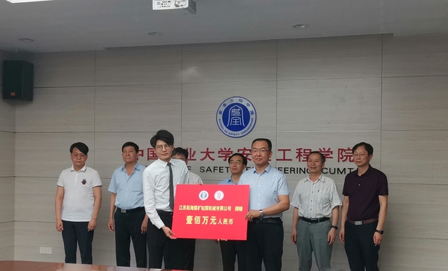 王恩元院长代表学院接受捐赠并致欢迎词,他简要介绍了学院近年来的发展情况,代表学院向丹阳市人民政府、江苏拓海煤矿钻探机械有限公司表示诚挚的感谢,他指出学院的发展离不开社会各界的大力支持,学院将与社会各界携手共同推动国家安全科技创新,扎实推进安全学科“双一流”建设。