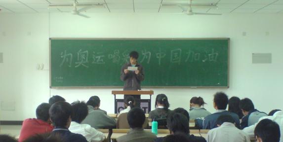随后,在班长黄建同学的组织下,同学们纷纷表达了自己的看法。同学们表示,一定会时刻关注奥运,从自身做起,以理性的态度对待各种事件,用自己的实际行动为奥运做出自己的贡献。