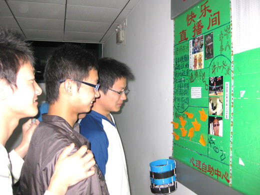 心理自助中心创办的“快乐直播间”在学院宿舍楼宣传栏上隆重登场,快乐出击。