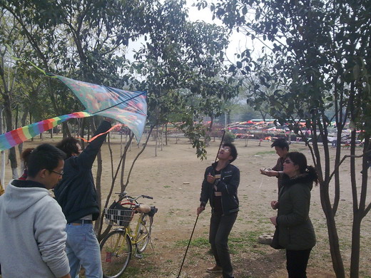图书馆门口集合。随后,大家步行至小南湖。队员们纷纷行动起来在附近寻找那些挂在树上的风筝,帮助风筝主人把风筝摘下来。挂在树上的风筝被服务分队成员们机灵敏捷地取下后又重新返回天空,尽情翱翔。风筝的主人们十分感谢服务分队的成员们,并与队员们合影留念。
