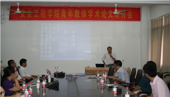 王德明院长对本次研讨会作了系统的总结,充分肯定了本次青年研讨会是一次高水准的科研创新研讨盛会,对4位报告人给予了高度评价和认可,并针对每一篇报告给予了细致的评析,堪称每位报告人为行业的专家,不论从科研创新工作还是论文的撰写都为青年教师和研究生树立了榜样,同时也对安全学科的青年教师和研究生提出了殷切希望,希望以本次报告为契机提升安全学科的科学研究水平,树立良好的科研风气,针对自己研究的领域多与国内外专家交流,提倡学科的交叉融合,鼓励青年教师根据学科的重大研究方向快速、准确寻找自己的定位、多参加科研项目、多发表高水平学术论文。王院长赞扬了本次研讨会的成功举办,为学院的学术交流建立了通畅的渠道,为青年教师的成长成才创造了浓厚的学术氛围,并预祝下一次的研讨会能取得更大的成功。