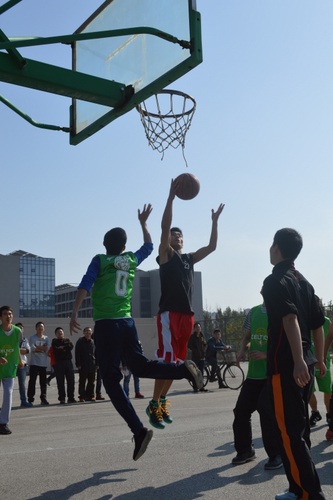 开幕式活动结束后,各参赛队伍集体合影,拉开了本次篮球赛的序幕。第一个比赛日共有程远平、朱国庆、王德明、王恩元、蒋曙光、秦波涛等六位老师的实验室队伍参赛。赛场上,各团队奋力拼搏,不甘示弱,一幕幕精彩绝伦地三步上篮和三分远投连续上演,场下一阵阵加油呐喊声此起彼伏,不断地将比赛气氛推向高潮。激情的碰撞和高超的球技把研究生斗志昂扬的青春风采展现的淋漓尽致。经过全场40分钟激烈地角逐,最终程远平老师组险胜朱国庆老师组,王德明老师组不敌王恩元老师组,蒋曙光老师组战胜了秦波涛老师组。各参赛团队将参加下一轮小组循环赛。