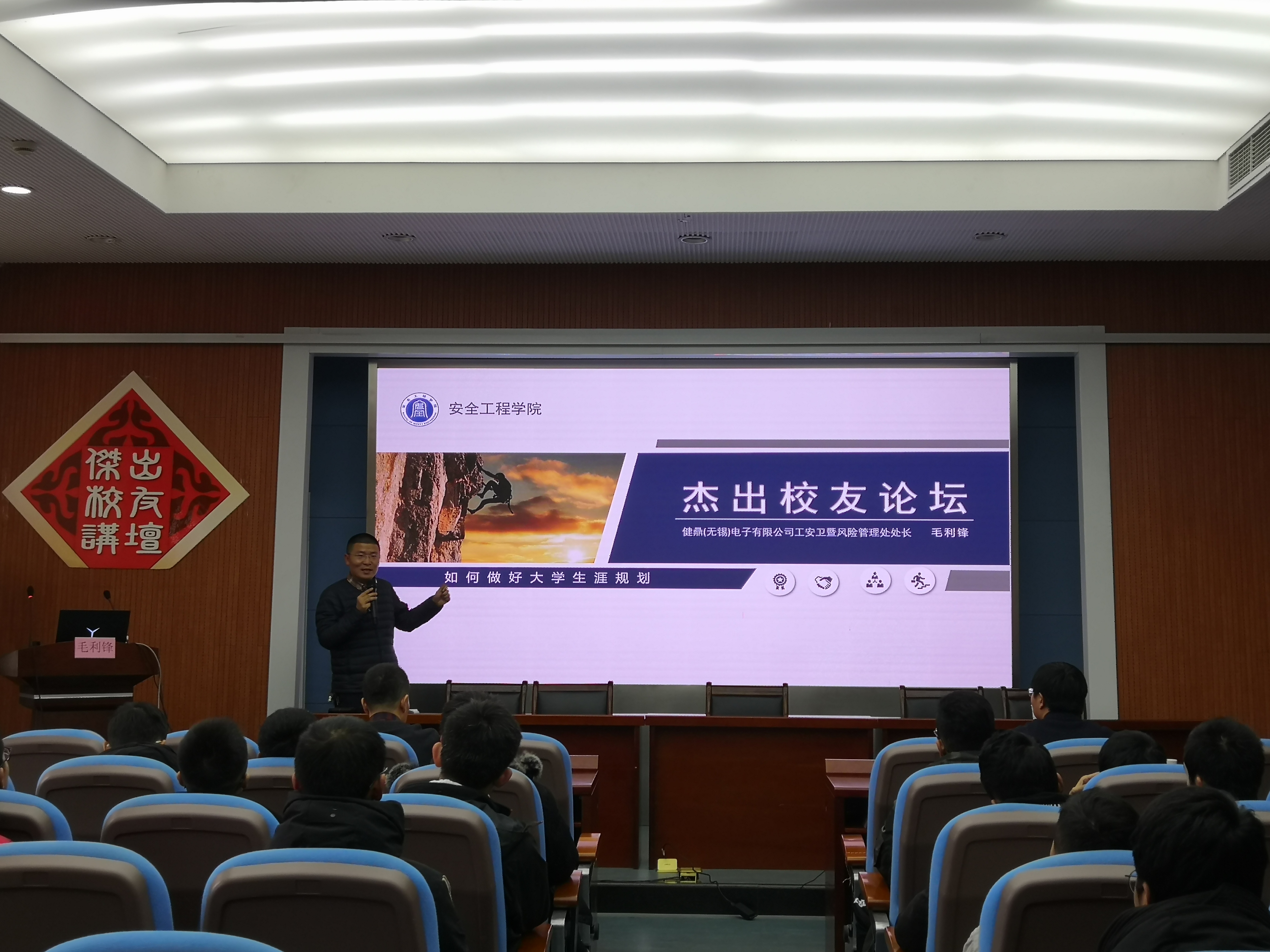2003届杰出校友、世界最大的印刷电路板生产企业健鼎(无锡)电子有限公司工安卫暨风险管理处处长毛利锋,应邀为绅士会所