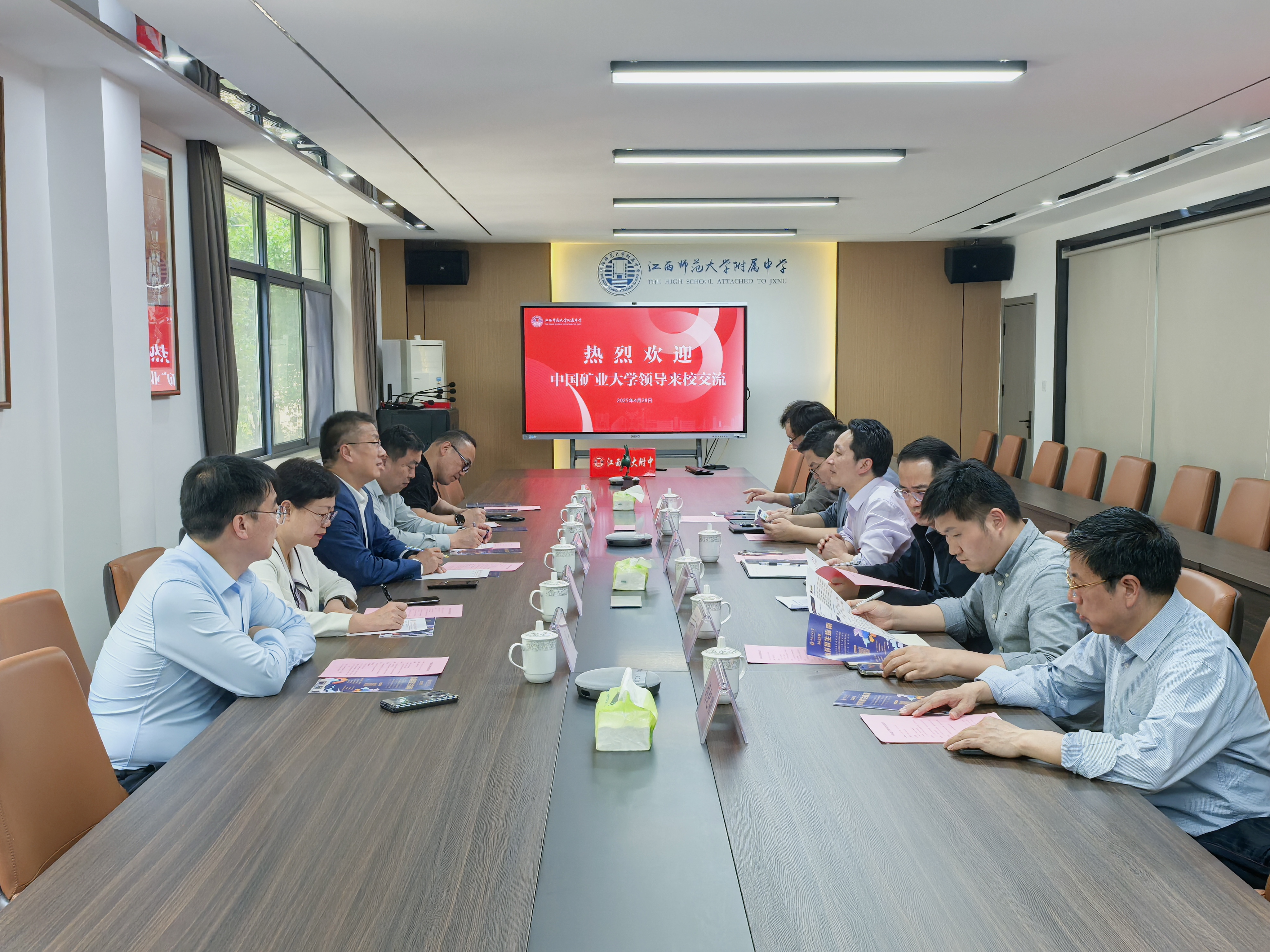 的办学历史与学校近年来的发展情况,并就大中衔接人才一体化培养路径、共育拔尖创新人才等方面提出合作展望,江西师范大学附属中学校长朱斌、南昌市新建区第二中学副校长黄春华分别介绍了中学近年来教育教学情况和人才培养成效。座谈交流环节,双方就大中课程衔接、科普讲座、生涯规划等方面进行了深入交流,并达成持续深入合作的意向。