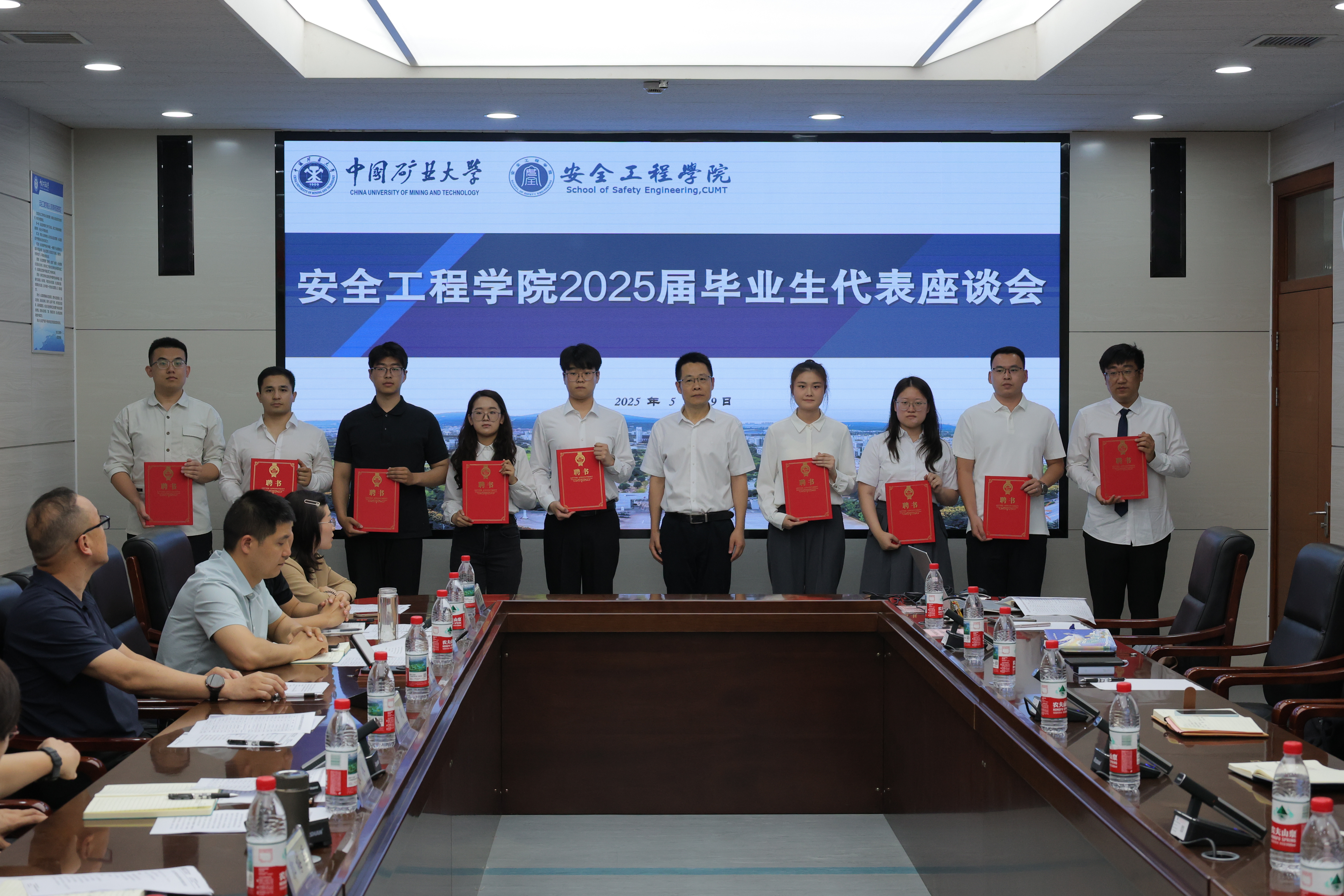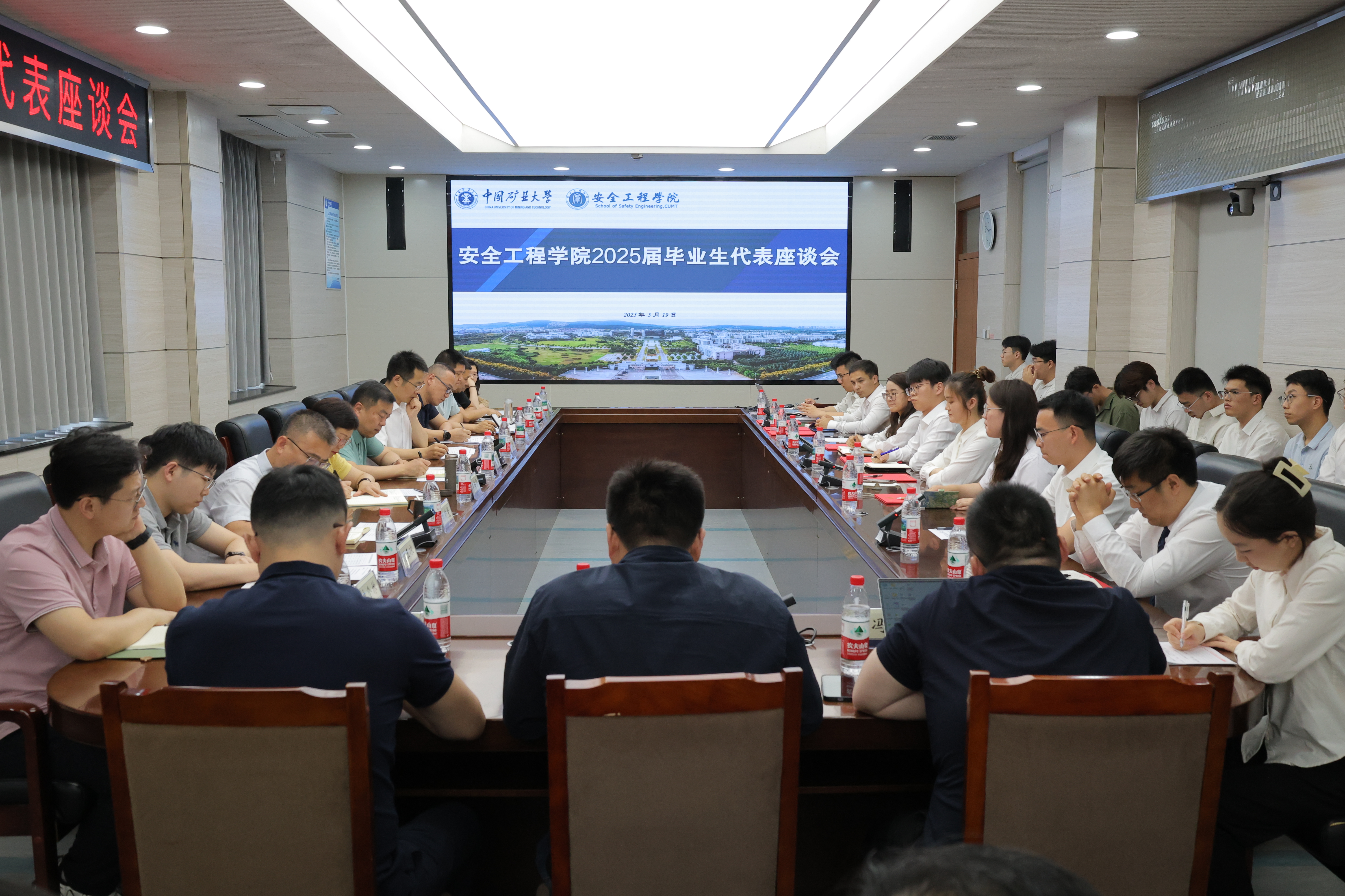 5月19日下午,学院在矿业科学中心A412举行2025届毕业生代表座谈会。院党委书记宋冰,院长翟成,副院长郭梅香,院党委副书记邵波,副院长刘晓斐、戚绪尧,2025届本科毕业生班主任,相关科室负责人及部分毕业生代表参加此次会议。座谈会由院党委副书记邵波主持。