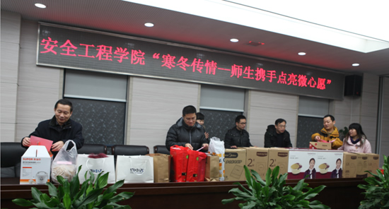 “寒冬传情——师生携手点亮微心愿”活动得到了学院党委和领导的高度重视和支持,院党委书记章毛平特别召开了教师党支部书记会议,部署由各党支部牵头组织教师搞好对接帮助学生实现心愿。学院领导每人都认领了学生心愿,许多老师还在为没有认领到学生心愿而感到遗憾。学生工作办公室和院办公室的老师们更是认真组织,精心采购,并及时把心愿礼物发到学生手中。据统计,此次教师帮助学生圆梦行动中,共有40多位老师共计花费1万多元。正如许多老师参与行动时所说,为学生花几百块钱不算什么,能够让他们感受到矿大和安全学院这个大家庭的的爱心和温暖,这才是最重要的!