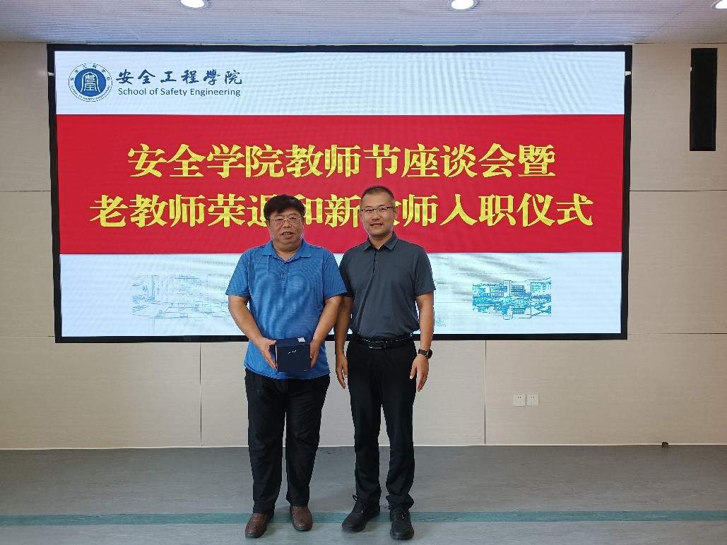 院党委书记曲颂为刘贞堂教授赠予纪念品并总结讲话。他代表学院向各位老师致以节日的祝贺,感谢大家对学院工作的支持,对刘贞堂教授长期以来为学院的付出表示感谢,对加入安全学院的新教师表示欢迎。他对大家提出了几点希望:一是忠诚党的教育事业。明确教师身份,以立德树人为根本任务,为党育人,为国育才;二是传承优良学科精神。做学科精神的传承者,讲好学科故事,推动学科和学院事业发展;三是落实师德师风要求。严守《新时代高校教师职业行为十项准则》,以德立身、以德立学、以德施教;四是做具有家国情怀,受学生爱戴的好老师。心怀“国之大者”,不忘“育人”初心,牢记“教育”使命,争做“四有”好老师。