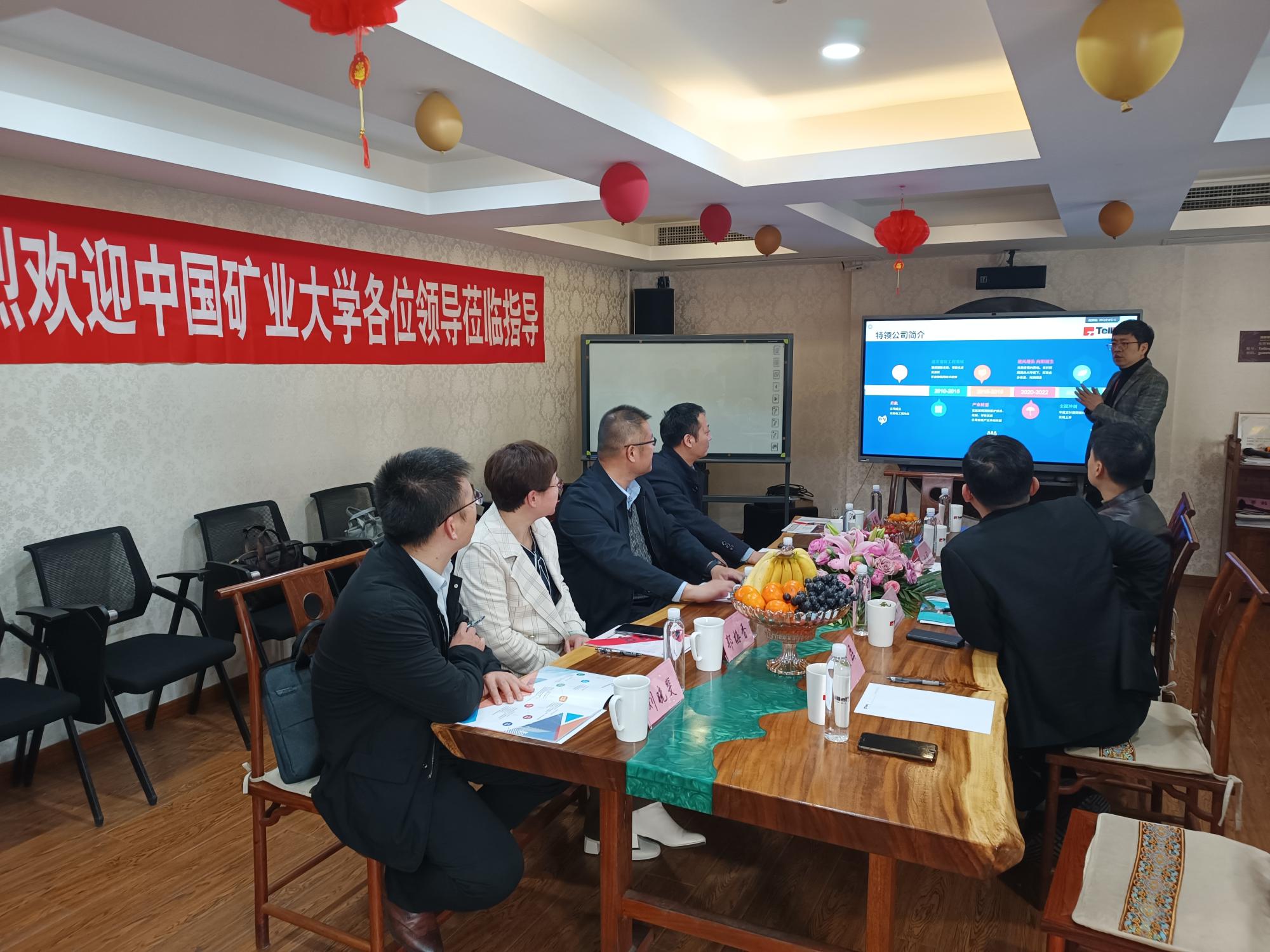 上海特领安全科技有限公司董事长张青对学院领导一行的到来表示热烈的欢迎,他强调,为行业培养人才是公司的社会责任,公司在学校设立了“特领优才”奖学金,也吸纳了矿大的毕业生就业,期待通过深化校企合作,加强人才培养,结合特领的发展需求和学院开展全方位的项目合作。