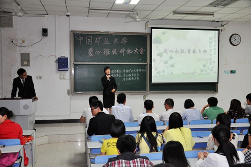 晚上七点,会议在安全学院服务分队队长杜长州对爱心班级一年的工作回顾总结中拉开了帷幕,“爱心班级”活动最早是由安全学院服务分队提出,并在全校得到广泛响应的献爱心活动,至今已经经历了五个春秋。今年的“爱心班级”系列活动在校学生工作处的悉心指导下也取得了骄人的成绩。其中,大会共对在全校表现突出的十八个班级进行了表彰。其中安全13-2班、行管12-1班和会计13-3班通过自己班级同学的共同努力获得了一等奖,获得二等奖的是安全13-4班、工设13-3班、机械13-9班、金融12-3班、会计13-1班和英语13-3班,另外还有九个班级获得了三等奖。