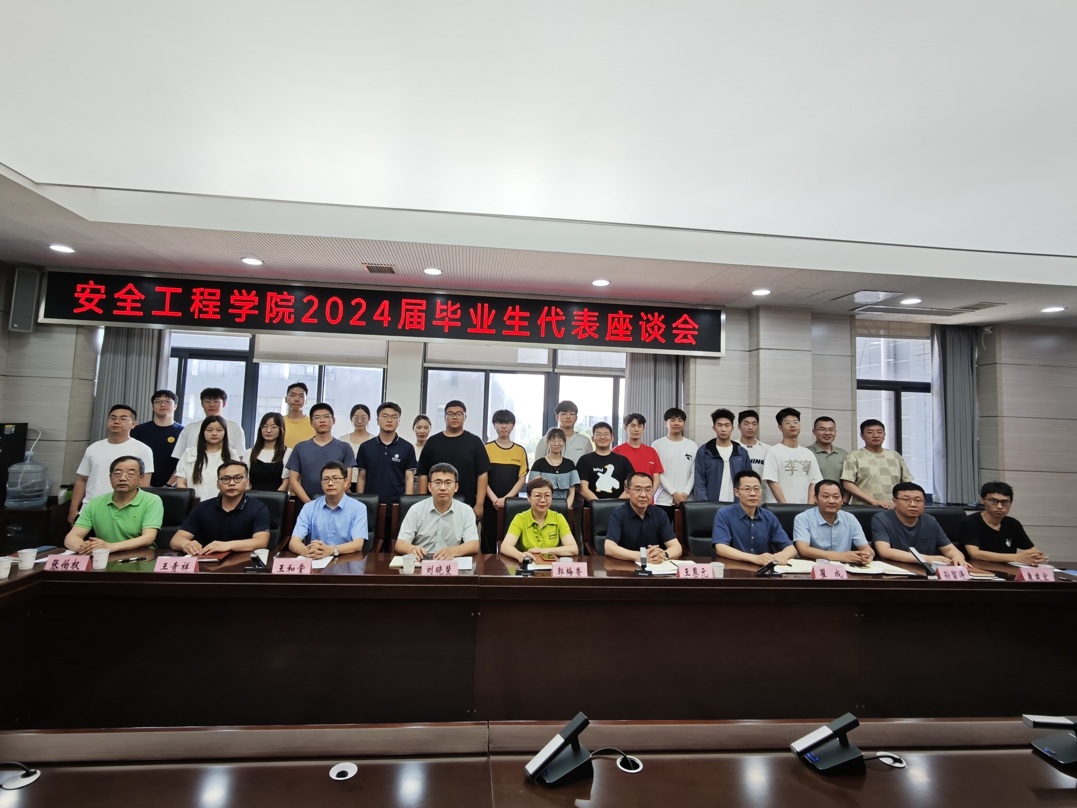 最后,院党委书记王恩元进行总结讲话。他对同学们关心学院事业发展,提出宝贵建议表示衷心感谢,学院将对同学们提出的建议和意见进行认真梳理,及时优化和改进。他表示学院永远是大家发展的坚实后盾,无论同学们今后身在何处、从事什么工作,学院都会一如既往地关心关注、支持帮助大家;他鼓励同学们毕业后要规规矩矩做事,方方正正做人,既要脚踏实地的工作,也要合理做好发展规划,保持一流自信、增强一流意识、充满一流干劲、展现一流风貌。他希望同学们毕业以后与学院保持联系,与学院老师经常交流沟通,有空常回家看看,一如既往的关心和支持学院事业发展,共同建设更好的安全学院。