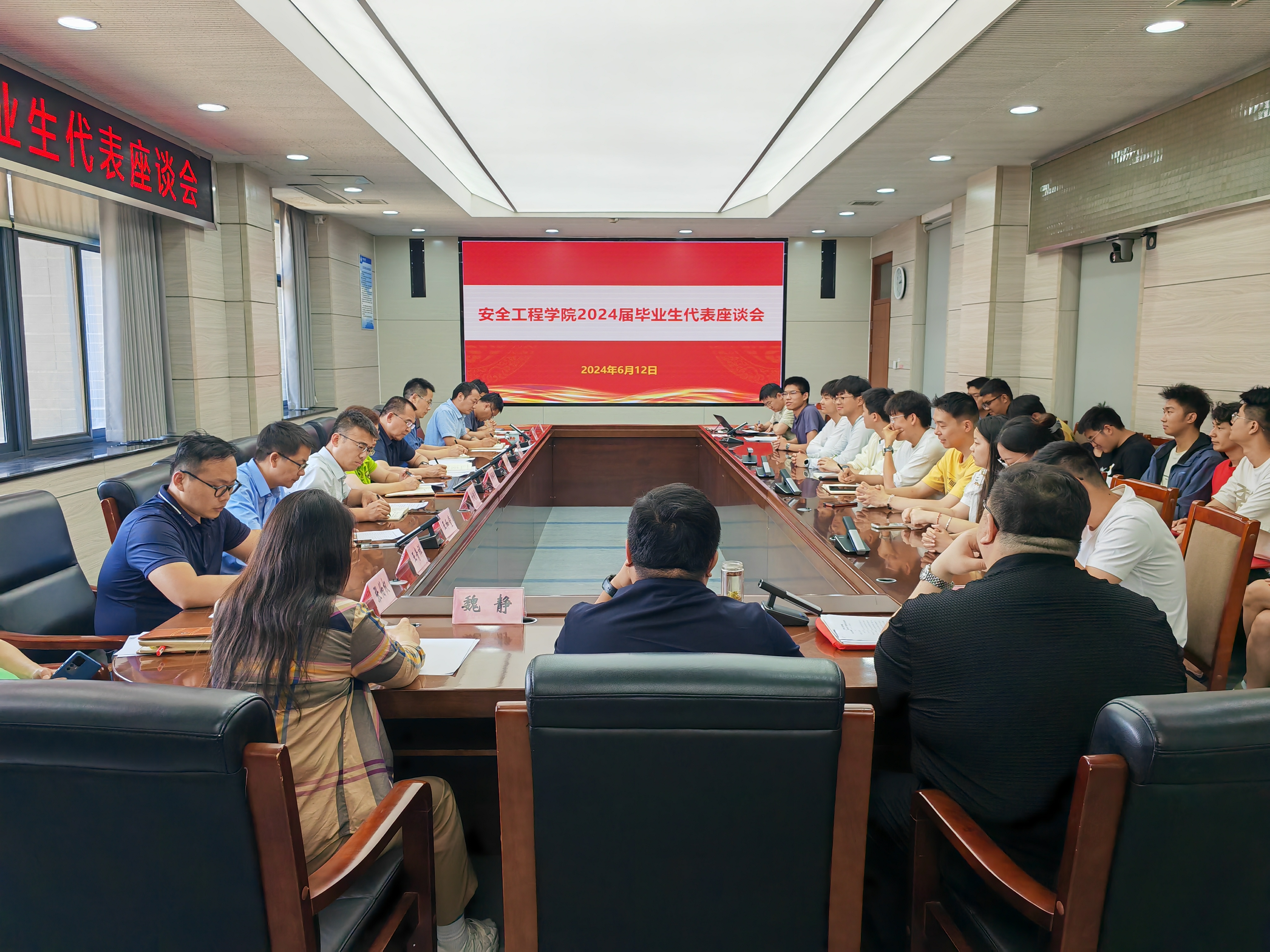 6月12日下午,学院在矿业科学中心A412举行2024届毕业生代表座谈会。院党委书记王恩元,院长翟成,副院长郭梅香、刘晓斐,2024届本科生班主任,相关科室负责人及部分毕业生代表参加此次会议。座谈会由院党委副书记孙留涛主持。
