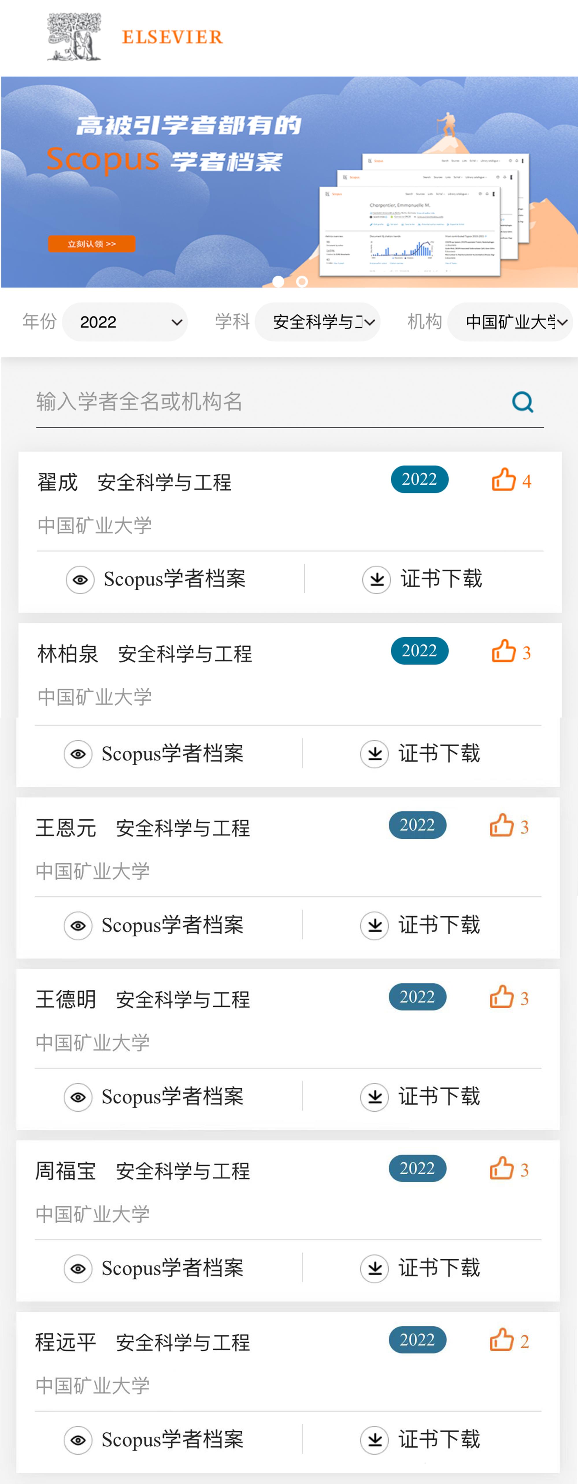 6位教授在安全科学与工程学科上榜,分别是翟成、林柏泉、王恩元、王德明、周福宝、程远平(按榜单顺序)。