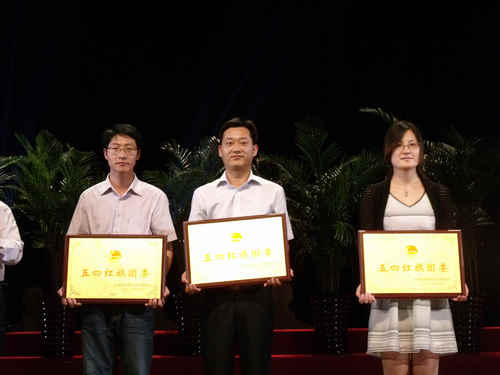 荣获五四红旗团委称号,学生工作办公室主任孙留涛(中)领奖