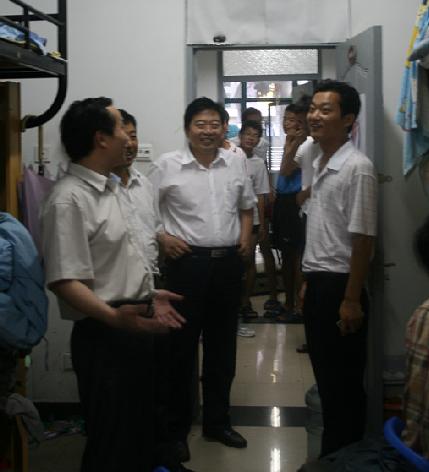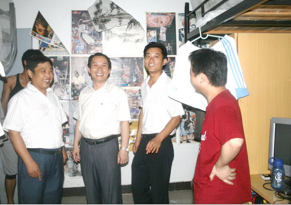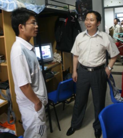 党委书记章毛平、院党委副书记兼行政副院长李金明、副院长李增华,辅导员孙留涛、陈少松老师冒雨来到梅苑三号楼,走访了毕业班学生宿舍,看望即将离校的毕业生,为09届毕业生送去了最真诚的祝福。