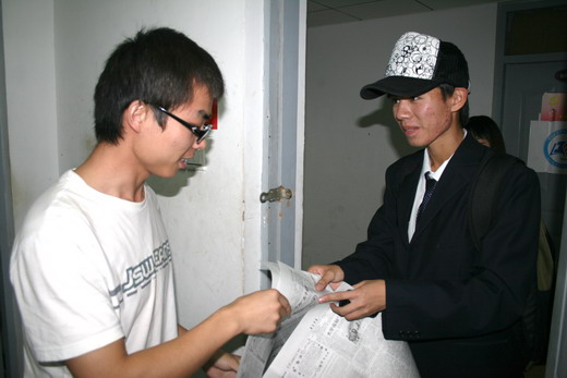 首先,李晶对《安报》的发放工作做了详细的安排,要求每位成员以微笑面对同学,以认真负责的态度对待发放工作,进而保证活动的顺利进行。之后,在宣传部部长郭峰和编辑部部长苗青的统一安排下,所有人都积极投入到工作中去。每个楼层都分配有四位成员进行发放,他们走遍每个宿舍,并将《安报》送到每位同学的手中,耐心讲解《安报》的编排情况与新闻宣传中心的日常工作,虚心接受同学们提出的意见。同学们对新闻宣传中心成员的辛勤工作表示赞扬,非常感谢他们为大家提供的精神食粮。
