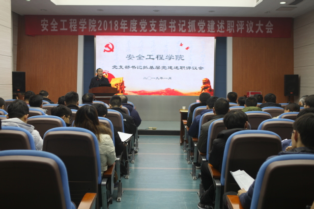 党委在矿业科学中心A200召开2018年度党支部书记抓基层党建工作述职评议大会。校党委副书记、纪委书记付恒升,学院党政领导、院党委委员、党支部书记以及部分校党代会代表和教代会代表、各党支部委员、部分师生代表出席会议。会议由院党委书记章毛平主持。