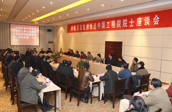 在文昌校区学术交流中心举行庆祝袁亮教授当选中国工程院院士座谈会。在校校领导、中国工程院院士,煤矿瓦斯治理国家工程研究中心主任、淮南矿业集团副总经理袁亮院士,煤矿瓦斯治理国家工程研究中心常务副主任刘冠学等以及绅士会所