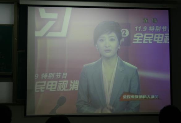 此次电影展为同学们展出的是2007年11月9日举行的《全民消防大演习》的视频资料。在视频中,主持人主要从高楼火险逃生、地下场所毒气逃生、化学物质泄露、道路汽车着火等十个方面向同学们讲述了在不同的场所面对火险时的应对方法和逃生技巧。同时,在视频中各位专家就火险中经常出现的一些错误行为给大家一一做了讲解,以鲜活的事实生动形象地让同学们认识到个人火场自救能力的重要性,对缺乏安全防范意识的同学起到了很好的警示作用。