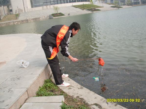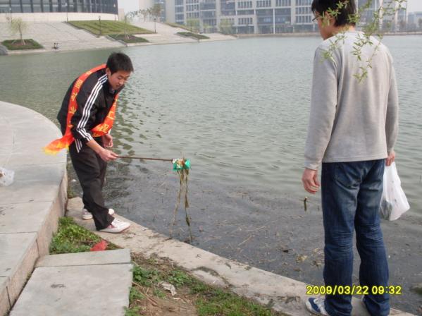 值百年校庆即将到来之际,3月22日上午9:00,安全学院青年志愿者协会发扬志愿者精神,开展了“爱我矿大,保护镜湖”为主题的活动。主要对镜湖周围的卫生进行清理,旨在用我们自身的行动提高大家的环保意识,让环境保护真正的成为每一个人的责任。