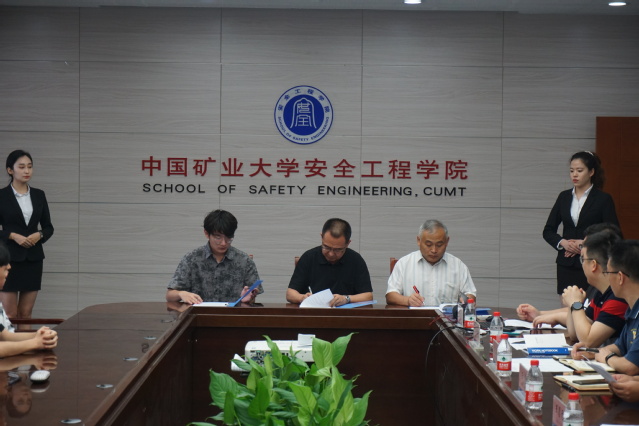 2017级消防1班的周昀同学作为学生代表与王恩元院长、朱国庆教授共同签订了“优才培育计划”培养协议。