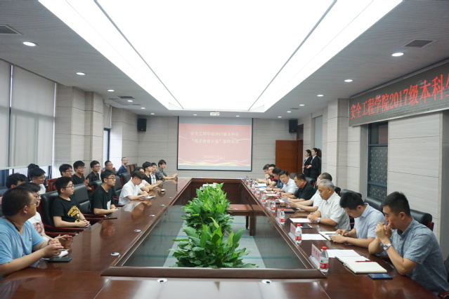 王思华书记介绍了“优才培育计划”签约学生名单的选拔过程,经过前期动员、自主申报、后期选拔,最终确定了安全工程专业2017级国际班何胜等20名同学入选绅士会所
