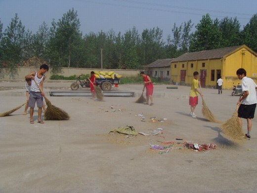 上午九点,实践团成员在李成刚老师的带领下来到徐州市毛六村的农场,他们将农场的杂物收拾进仓库,帮助公司员工搬运种子,并对农场进行打扫。七月的天气里,天气十分炎热,但同学们不怕脏、不怕苦、不怕累,将清扫的垃圾装车运到不远处的垃圾站。