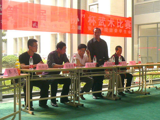 武术协会防卫术教练刘耘志先生,徐州著名拳师丁运宽先生,丁小龙先生,担当评委。比赛由社联秘书处李鸾慧同学主持。