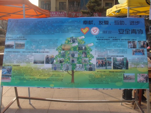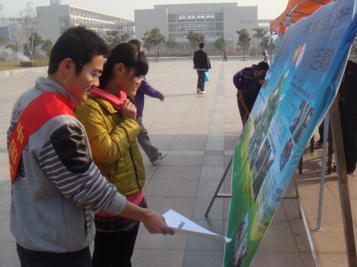志愿者们通过展板向过往的同学们介绍国际志愿者日的相关知识与本学期绅士会所