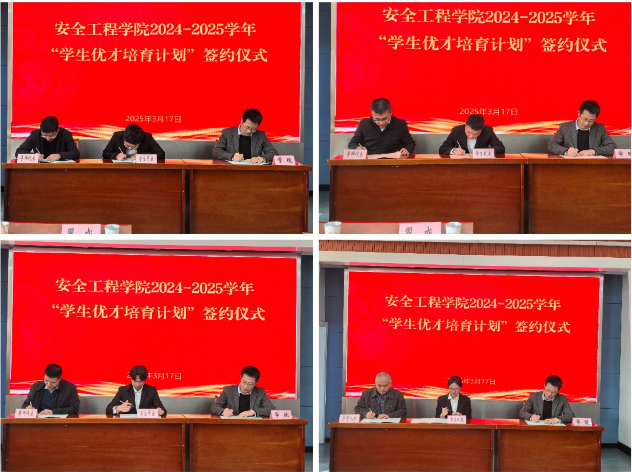 人工智能研究院的成长收获,并鼓励同学们要明确目标,不忘初心、珍惜在校学习时间,努力成为安全领域一流拔尖人才。签约学生代表刘振宇讲述了自己在矿大学习生活中的感悟以及加入优才计划一年半以来所取得的成绩与收获,并表示将继续秉承“开拓创新、追求卓越”的精神,勇于创新、敢于实践,扎根安全学科,服务国家能源行业发展。