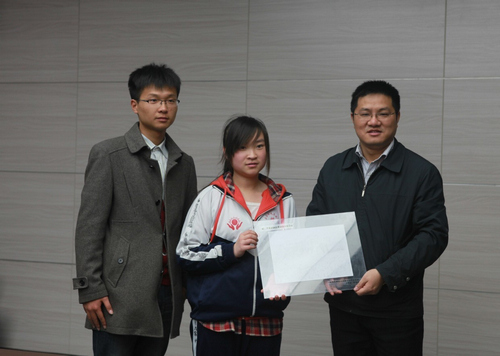 学生顾范君在支教期间兢兢业业的教学表现,对学院师生的帮助表示由衷的感谢。随后,石家田九年制学校校长和学生代表分别向学院赠送了“人间自有真情在,安全捐助暖人心”的锦旗和学生自己创作的画。