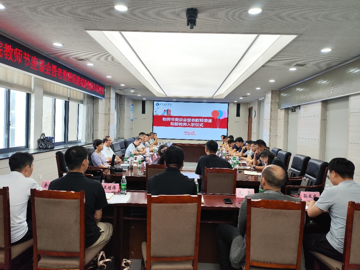 在第40个教师节来临之际,9月9日上午,学院在矿科A412会议室召开庆祝第40个教师节座谈会暨退休教师荣退和新教师入职仪式。院长翟成,校党委教师工作部、人力资源部副部长龚成,副院长郭梅香,荣退教师章毛平、何书建、杨胜强、樊秀娟,以及部分教师代表、新教师参加了座谈会。座谈会由副院长郭梅香主持。