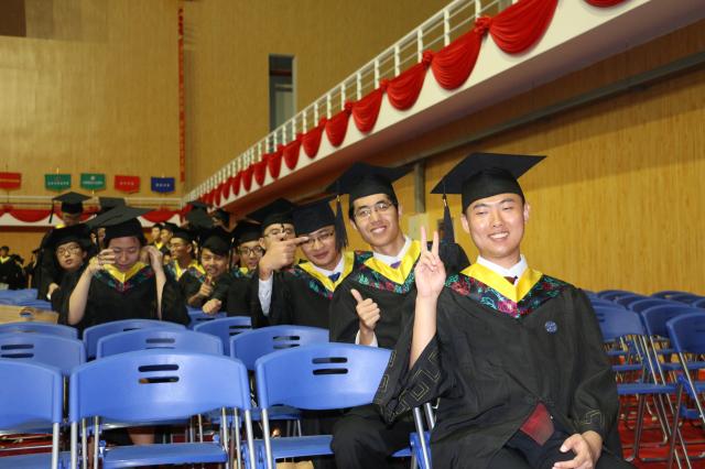 全体2016届本科毕业生们身着学士服参加了仪式。