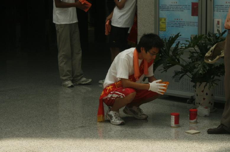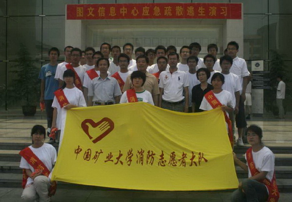 消防志愿者积极参与演习,对演习前图书馆的人员进行了指挥和疏导。
