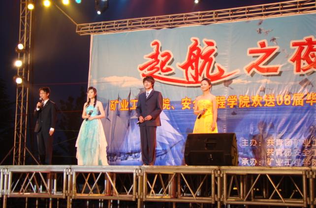 学生会承办的“启航之夜”毕业生晚会在南湖校区二餐厅广场隆重举行。校党委宣传部副部长刘静丽、校精神文明办公室副主任李广文、学生工作处副处长蒋敏老师、校团委书记熊志忠老师、矿业学院党委书记姬长生老师、安全学院党委书记章毛平老师、安全学院党委副书记兼行政副院长李金明老师及全体辅导员老师和部分毕业班成员出席并观看了此次晚会。