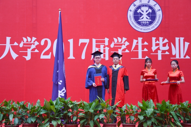 院长周福宝教授、副院长王恩元教授,学院教授委员会主任林柏泉教授、委员王德明教授、蒋曙光教授、秦波涛教授,研究生导师代表杨胜强教授、李忠辉教授,以及安全学院2017届博士、硕士毕业生100余人参加仪式。仪式由王恩元副院长主持,他首先宣读了授予学位的研究生名单,随后,周福宝院长颁发学位证书,葛世荣校长亲自为每一名研究生扶正流苏并合影留念。仪式结束后,全体参加仪式的师生在体育馆前合影留念。