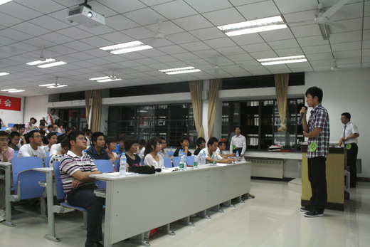 下午6:00时,答辩会现场已座无虚席。6:30,答辩大会准时开始。首先由09-10届学生会主席伏旭对本次答辩委员会的组成做了相关说明,并详细的介绍了答辩和投票选举的规则以及主席团成员的最终确定办法。
