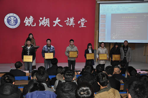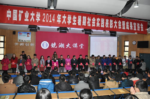 荣获校级社会实践活动先进单位荣誉称号,安全学院“江苏省徐州市铜山区桥上社区”获得校级优秀实践基地荣誉称号,安全学院《农村沼气池利用情况调查报告》被评为校级优秀社会实践活动调查报告。安全学院硕博团队获得江苏省省级优秀团队荣誉称号;安全学院“爱心阳光之队——关爱留守儿童实践团”获得校级社会实践活动优秀团队荣誉称号。安全学院孙婷老师获得徐州市先进工作者,沈志伟获得徐州市先进个人荣誉称号,安全学院曹蒙钰、董齐齐等9人荣获校级社会实践活动先进个人荣誉称号。颁奖仪式结束后,各优秀代表团派出代表做实践成果报告。安全学院研究生代表朱金陀登台发言,发言中,他向大家讲述了他们团队走进安徽省金黄庄煤矿做实践活动的经历,分享了实践团获得成功的经验。