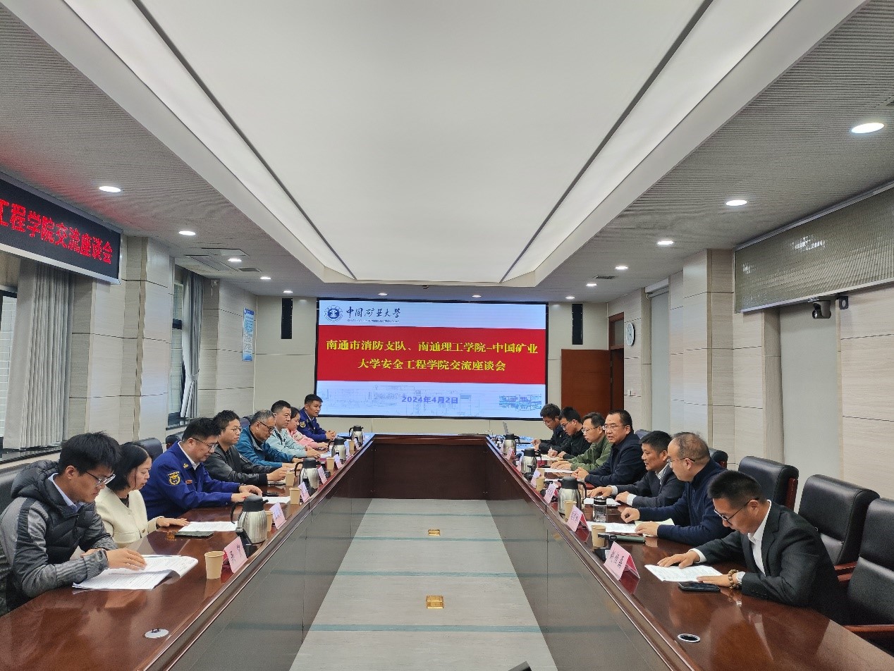 4月2日下午,南通市消防救援支队魏志强副支队长、南通理工学院顾力平副校长等一行来院调研交流,徐州市消防救援支队副支队长姜浩陪同来访,学院在矿业科学中心A412召开座谈会。院党委书记王恩元,煤矿灾害防控全国重点实验室、煤矿瓦斯治理国家工程研究中心行政副主任胡惠强,消防与公共安全研究所所长季经纬及部分教师代表参加了座谈会。座谈会由城市火灾防控江苏省高校重点实验室副主任闫怀林主持。