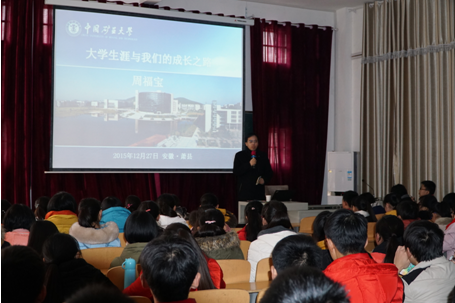 2015年12月27日上午,安全学院院长周福宝教授走进萧县实验高中报告厅,为一百五十余名高三实验班学子做了题为《大学生涯与我们的成长之路》的报告。